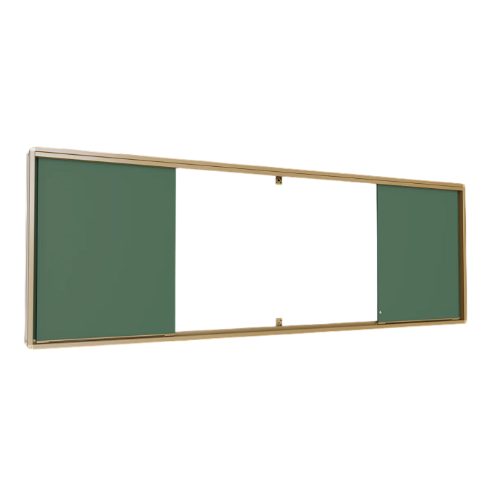 Благодаря специальным рельсам классическая доска легко сдвигается вдоль стены, открывая или скрывая интерактивную панель в нужный момент. Подобное решение особенно полезно, если помещение имеет небольшую площадь или когда необходимо оперативно сменить формат урока — например, переключиться со знакомства с текстовым материалом на просмотр цифрового контента. Механизм перемещения не требует больших усилий, позволяя учителю в считанные секунды перестроить ход занятия: чертить схемы, решать задачи, проводить интерактивные опросы и многое другое.