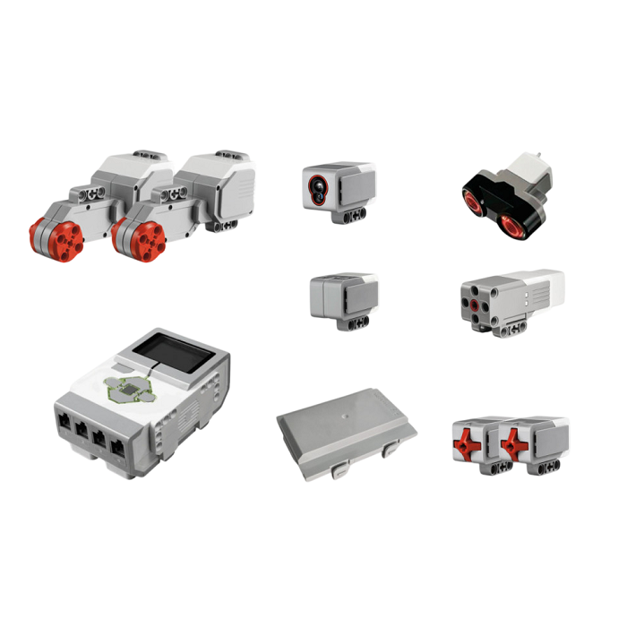 С помощью базового набора можно собрать несколько моделей: робота на колесах, сортировщика, манипулятора, щенка и т.п. Высокотехнологичная игрушка вдохновляет детей на изучение школьных предметов, совместное обсуждение задач и поиск наилучшего инженерного решения.
