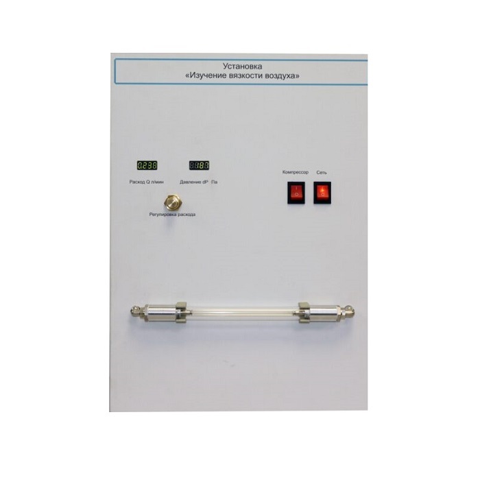 Лабораторная установка «Изучение вязкости воздуха» предназначена для проведения лабораторной работы по курсу «Физика» раздел «Молекулярная физика и термодинамика» в высших учебных заведениях.